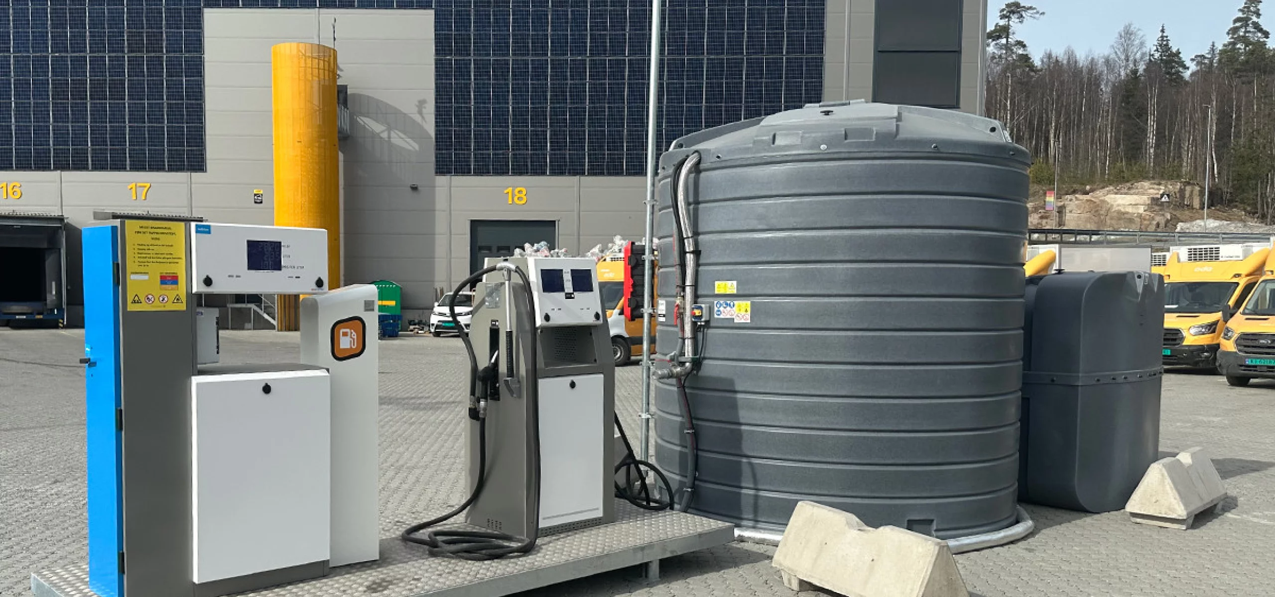 Bærekraft i praksis: Drivstoffanlegget er utstyrt med AdBlue for alle kjøretøy, og bidrar dermed til å redusere skadelige NOx-utslipp.